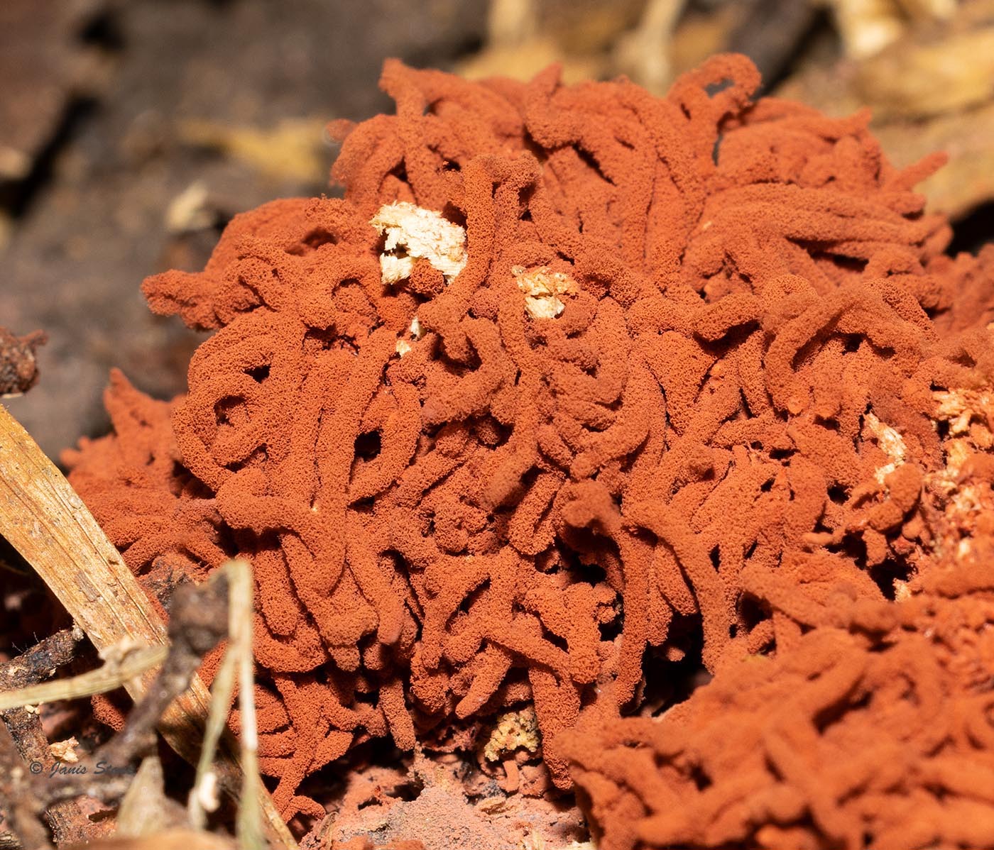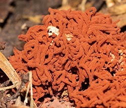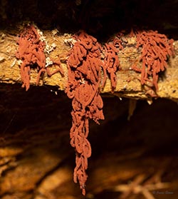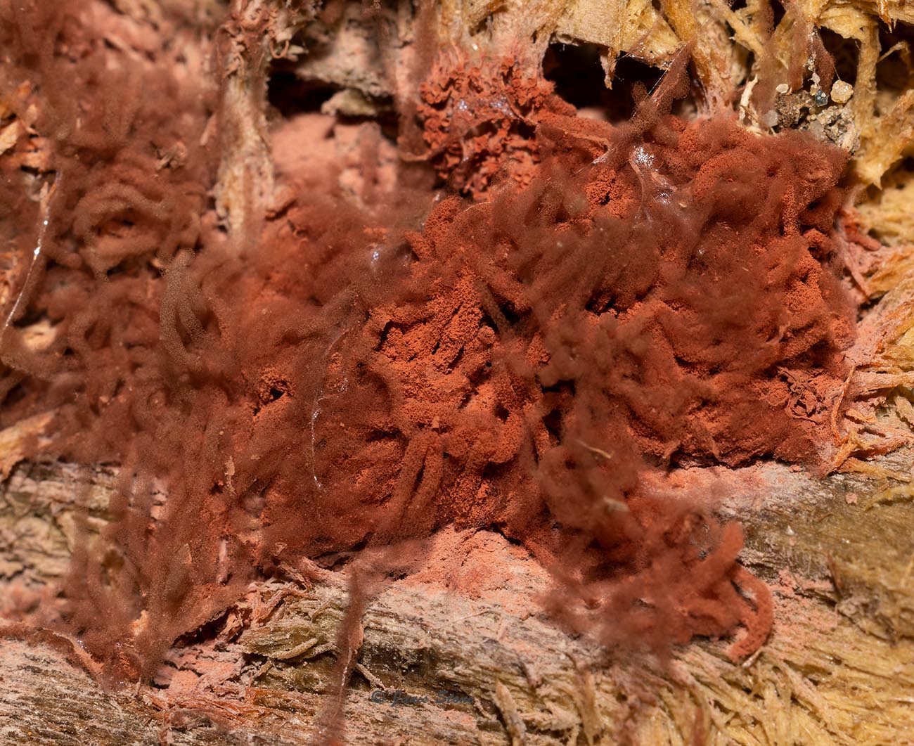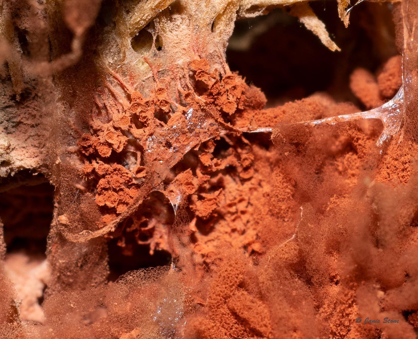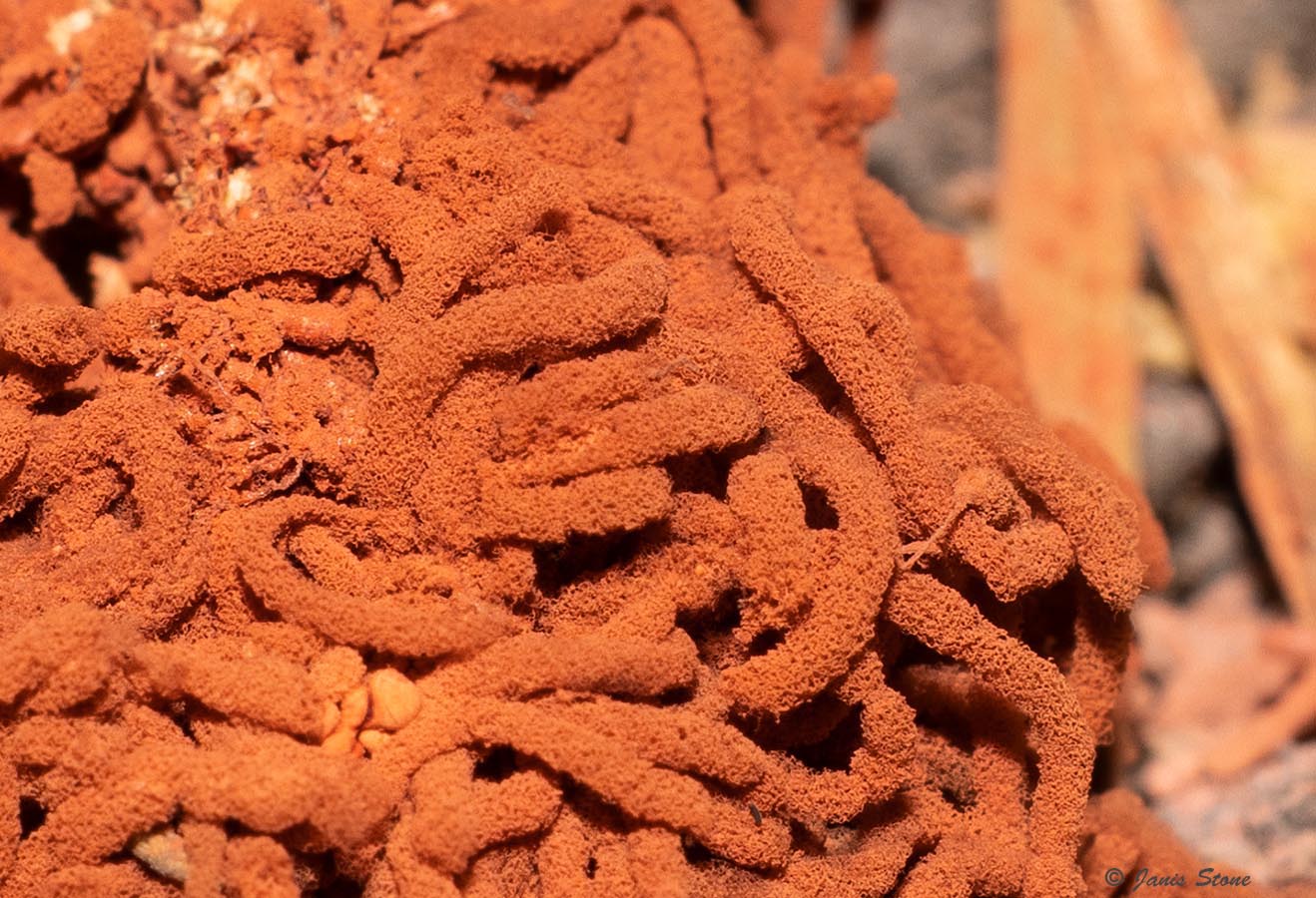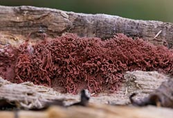 Carnival Candy Slime Mold gets its common name from the resemblance of its fine spore bearing structures