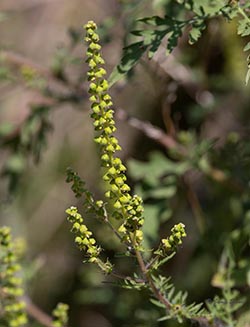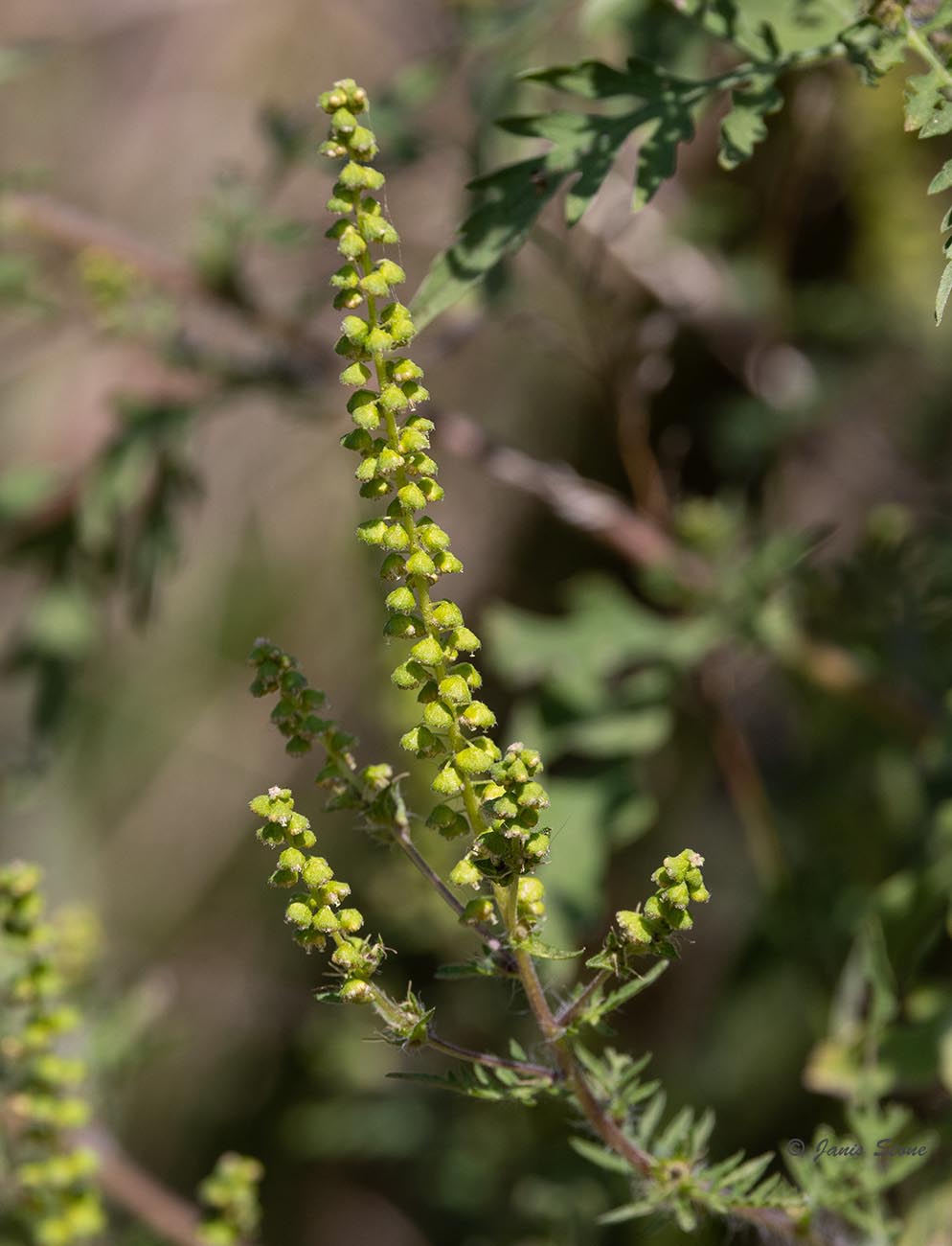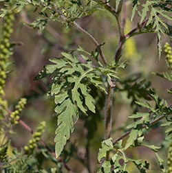 Common Ragweed is native to North America, but has become invasive in other parts of the world. Its wind-blown pollen is highly allergenic, especially in people susceptible to hay fever. It has compound leaflets, which helps distinguish it from other ragweeds in our area. Common Ragweed's seeds persist into winter and are a good source of food for birds.