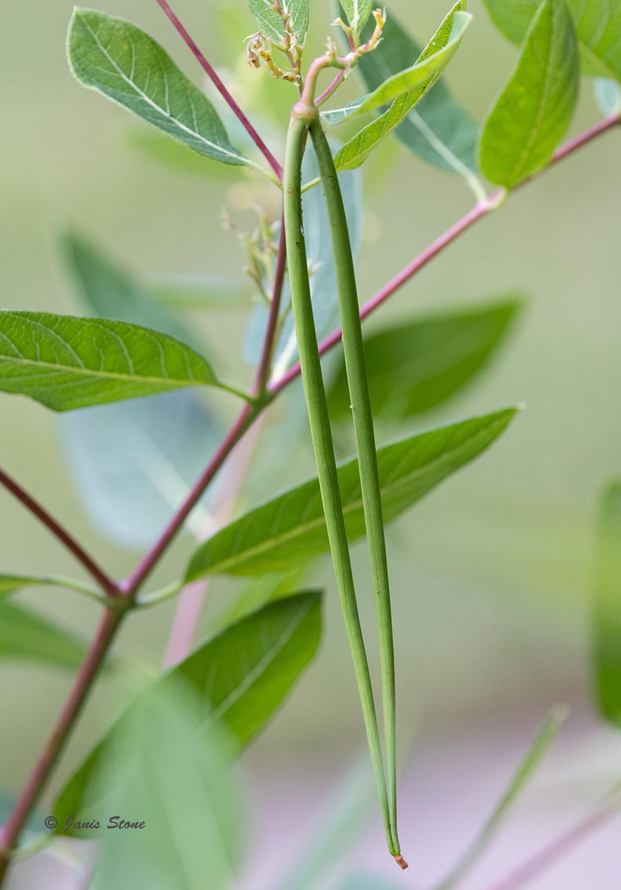 Dogbane is often found in fields, open woods, and disturbed areas. Although superficially similar to milkweeds, it can be quickly distinguished by its branching habit and brown stems. All parts of the plant are poisonous, including the milky latex that oozes from broken stems which can cause skin blisters. Despite (or maybe because of) its toxicity, Dogbane has been used in herbal medicines for a variety of purposes.