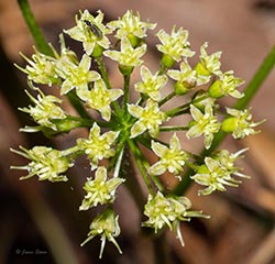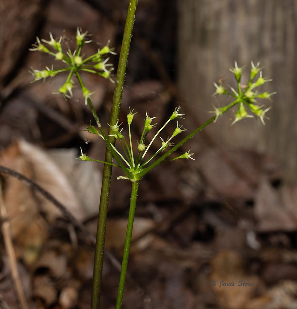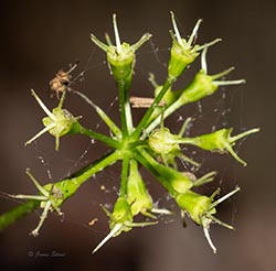 The flowers are on a separate stalk, typically in 3 globe-shaped clusters that eventually get almost