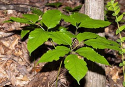 Wild Sarsaparilla appears to have multiple leaves, but it actually only has one (or occasionally 2) leaves.