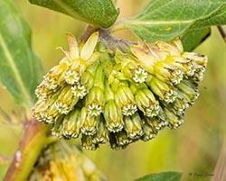 Green Milkweed's flowers are green and sweet-smelling, and are in dense clusters at the top of the plant. Its leaves have a lighter underside than their upperside and may have light hairs. Like most milkweeds, Green Milkweed has a deep rootstock that helps the plant survive fire and drought.