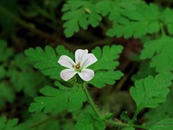 Herb Robert leaves are compound, and its flowers can range from white to pink to red-purple. While it is considered rare, it can be locally abundant at some sites.