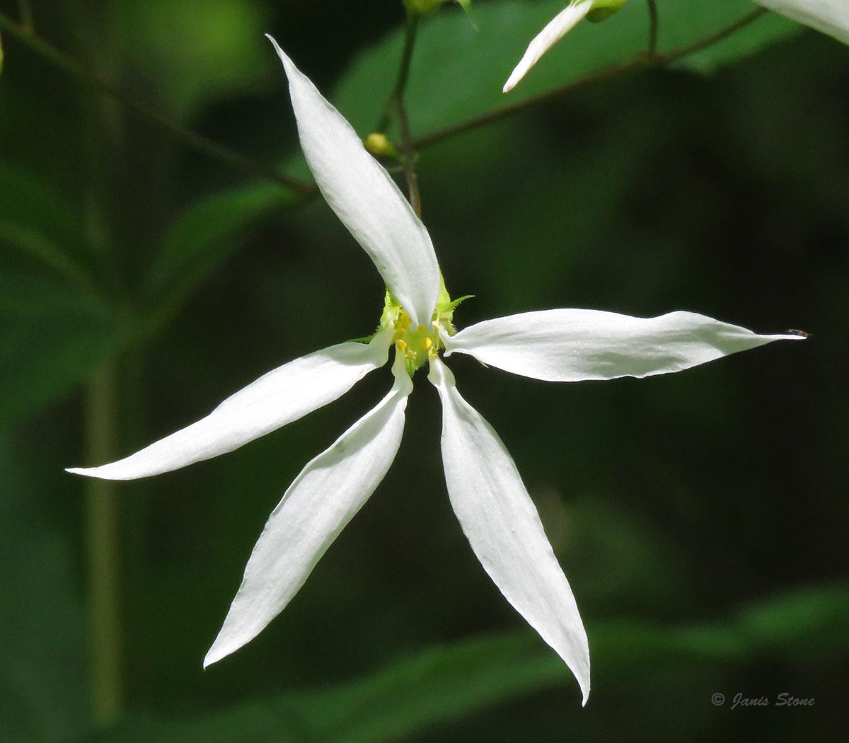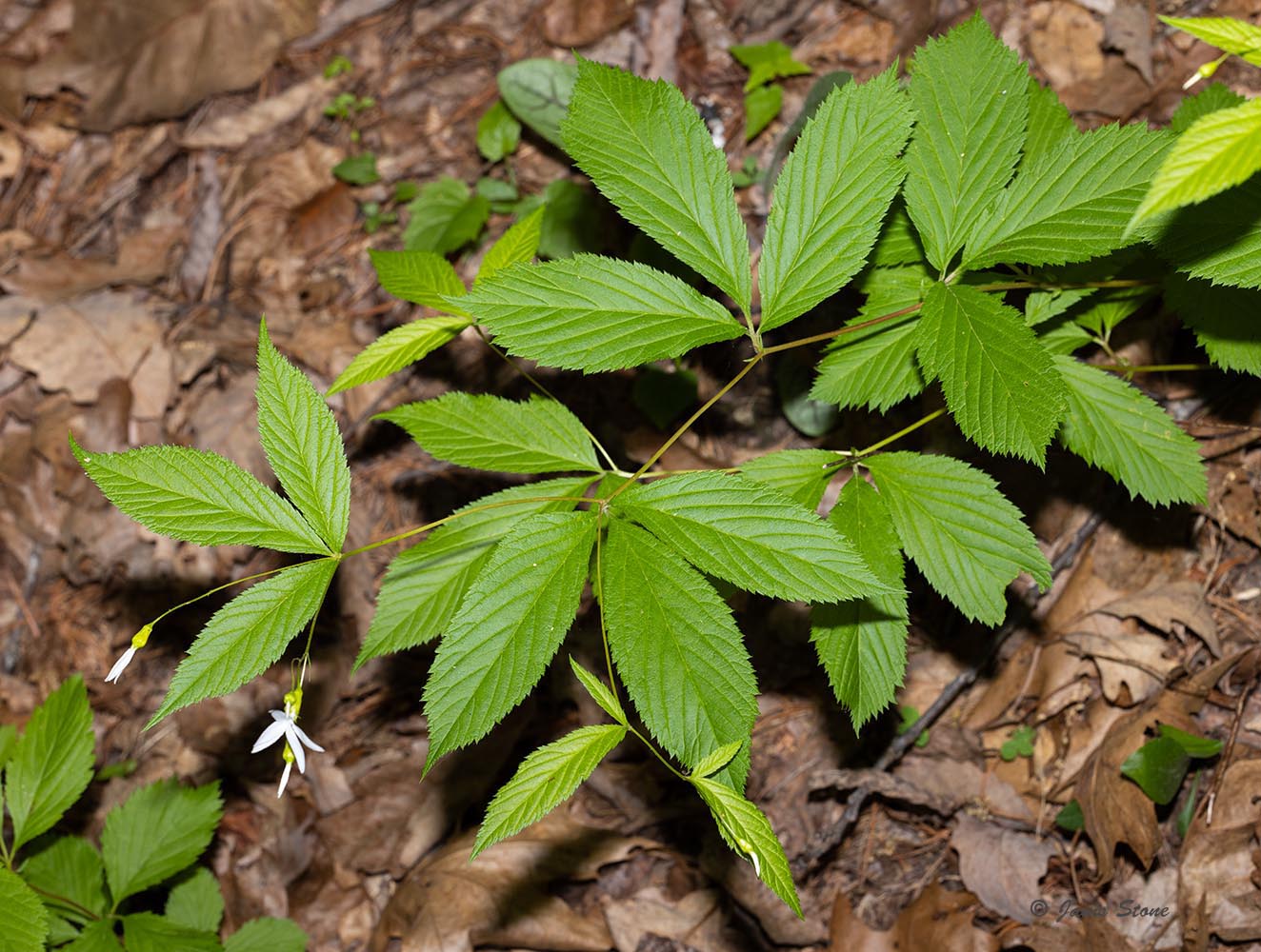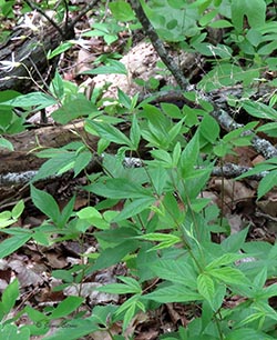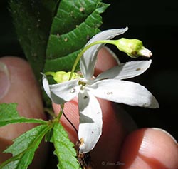 Bowman's Root has 3-lobed palmate leavees and narrow-petaled white to pink flowers.