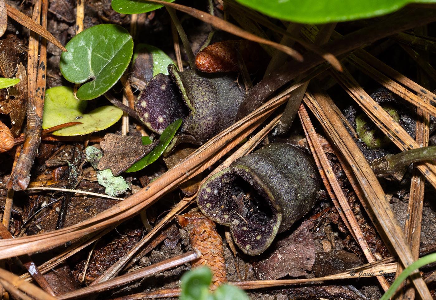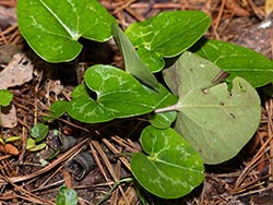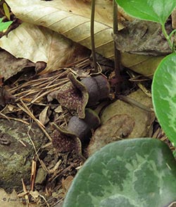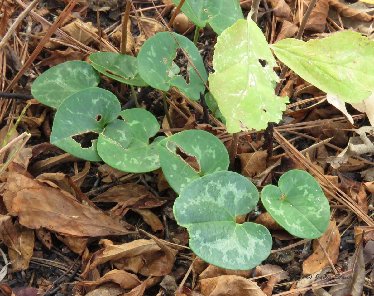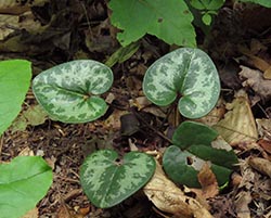 Virginia Heartleaf gets the second part of its common name because it's leaves look like they have been water-stained. Considerable work and discussion has gone into deciding if Hexastylis (Heartleaf) and Asarum (Wild Ginger) should be considered two separate genera or only one.