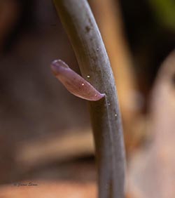 It is also similar to the Small Whorled Pogonia (Isotria medeoloides) (in the same genus). The Large Whorled Pogonia lower part of its stem is purplish (not green) and is generally taller (up to 35 cm high). The two species are most easily differentiated when in bloom. The Large Whorled Pogonia flower's sepals are brownish, not green, and the flower is separated from the whorled leaves by a longer pedicel (2-5 cm).