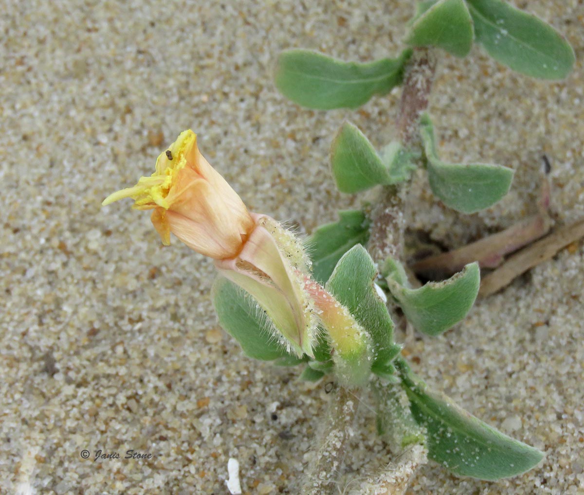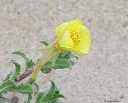 Seabeach Evening Primrose can be found in coastal sand dunes, usually on the grass-dominated foredunes or in open scrub on secondary dunes, or infrequently on dry inland sandhills.