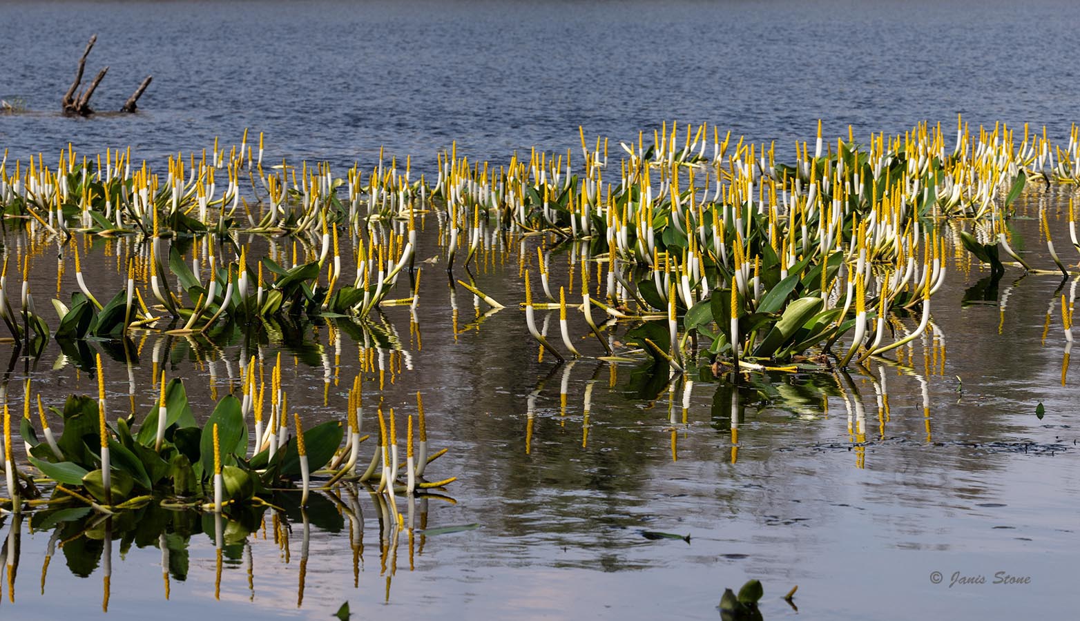 Golden Club can be found in bogs, seepage swamps, shallow streams, ponds, and tidal freshwater marshes. It is the only member of the genus Orontium.