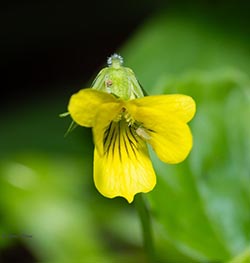Regardless of what you name it scientifically, Smooth Yellow Violet has broad ovate leaves. It bears both chasmogamous (open) and cleistogamous (closed self-pollinating) flowers, like many other violets. The open flowers are bright yellow with purple or brown-purple veins near the petal bases. Smooth Yellow Violet is quite similar to Downy Yellow Violet (V. pubescens), but Smooth Yellow Violet's leaves are smooth (glabrous) as opposed to the Downy's densely pubescent leaves. It usually has 2 or more stems, which are slightly pubescent. Look for Smooth Yellow Violet's fairly distinctive 56mm sepals.